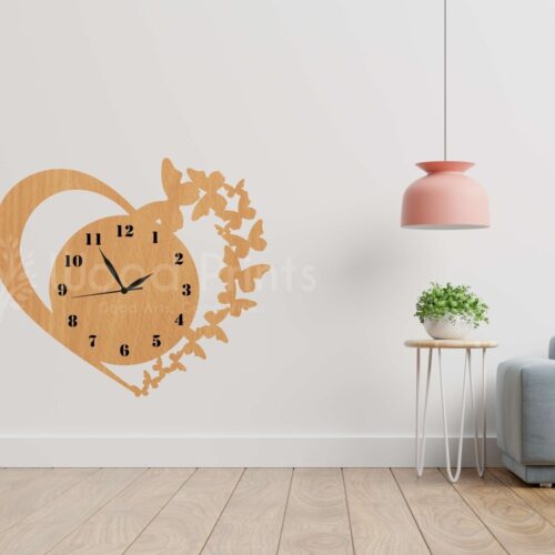Wooden heart shape fancy clock