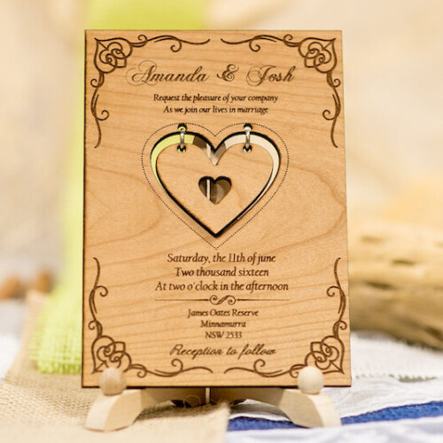 wooden Heart wedding invitation